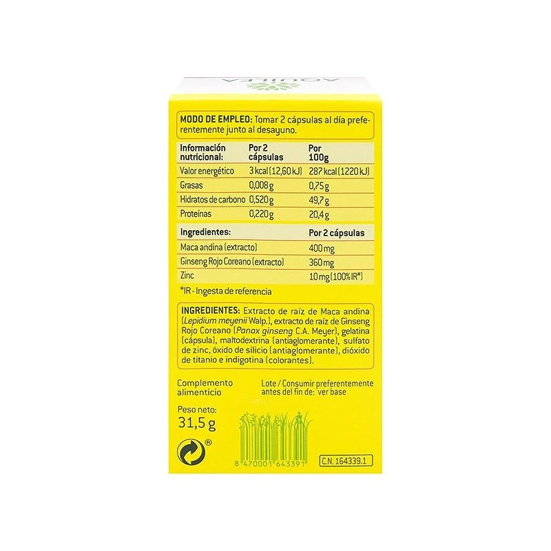 Producto 100% natural, elaborado a base de Maca Andina, planta utilizada tradicionalmente para la mejora del deseo de hombres y mujeres. Indicado para cuando se quiere mejorar el deseo y la vitalidad, cuando el cansancio dificulta las relaciones sexuales, para hombres que quieren elevar el vigor. Contiene L-Arginina, para mantenerse en buen estado físico y estar activos.