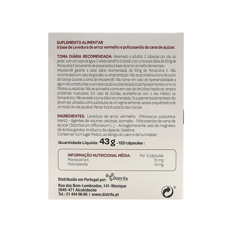 Arkosterol contribuye al mantenimiento de un buen nivel de colesterol. Tanto la levadura de arroz, como los policosanoles, reducen los niveles de colesterol malo (LDL) y del colesterol total generado por el organismo.
