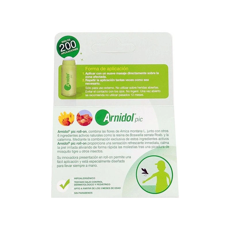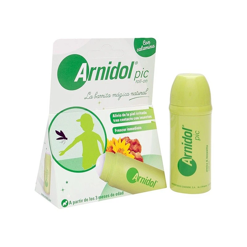 Arnidol® Pic stick combina las flores de Árnica junto con otros 6 ingredientes activos naturales como la resina de Boswelia y la Calamina de origen mineral, para un alivio inmediato de la piel de los más pequeños tras una picadura de mosquito, mosquito tigre y otros insectos.