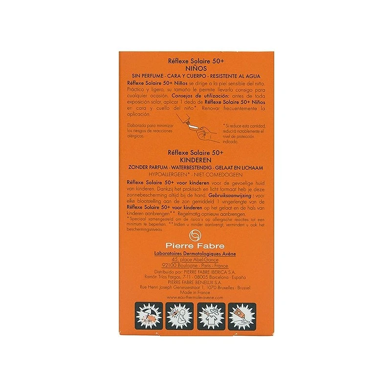 Avene Solar Niños SPF50+ Reflexe Solaire 30ml es un protector solar toque seco para piel sensible.