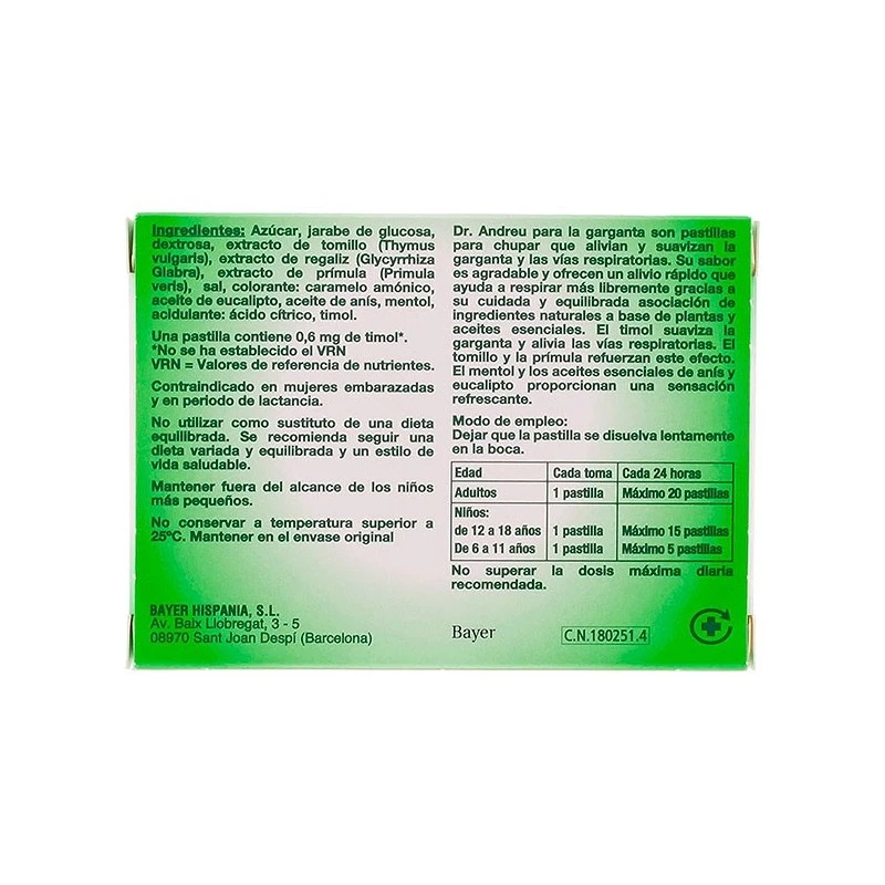 Bayer Dr. Andreu Pastillas Sabor Miel 24uds