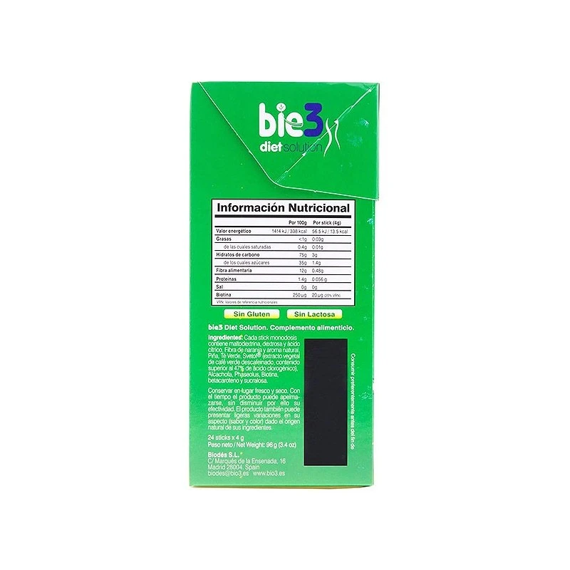 Bie3 Diet Solution 24 Sobres solubles, es capaz de actuar como coadyuvante en el control y la pérdida de peso, como parte de una dieta controlada.