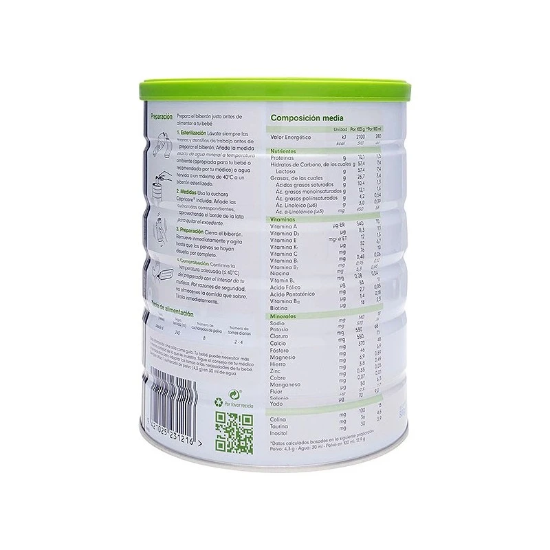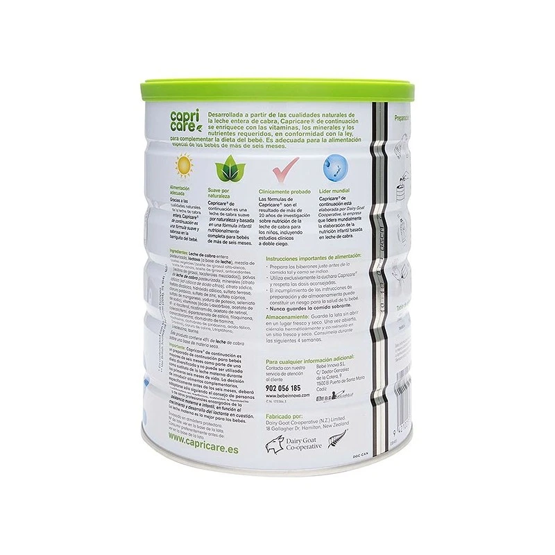 Capricare 1 Leche de inicio 800gr es una leche de inicio a base de leche de cabra para bebés es una leche de fórmula para bebés hecha a base de leche entera de cabra, que mantiene los componentes naturales de la leche como son las grasas, las vitaminas y los minerales.