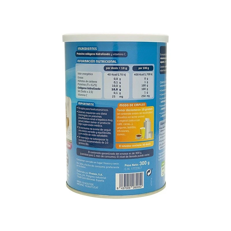 Está formado exclusivamente por proteína colágeno hidrolizada COLNATUR, natural, muy asimilable y pura, con vitamina C.