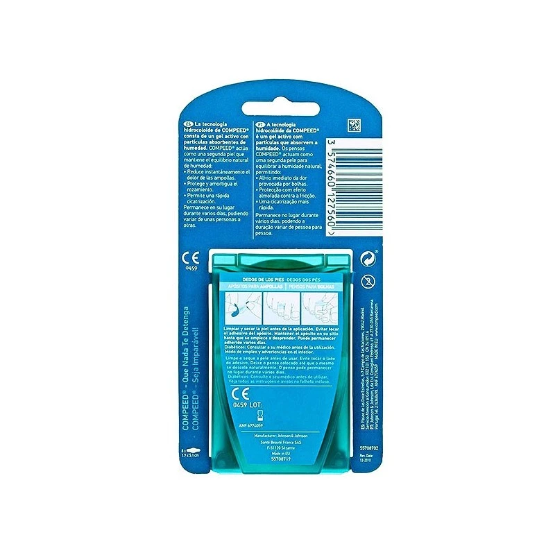 Los apósitos Compeed® Ampollas Dedos Pies, con su tecnología hidrocoloide actúan como una segunda piel formando un gel protector que ayuda a curar las ampollas en los dedos de los pies y previenen su aparición: