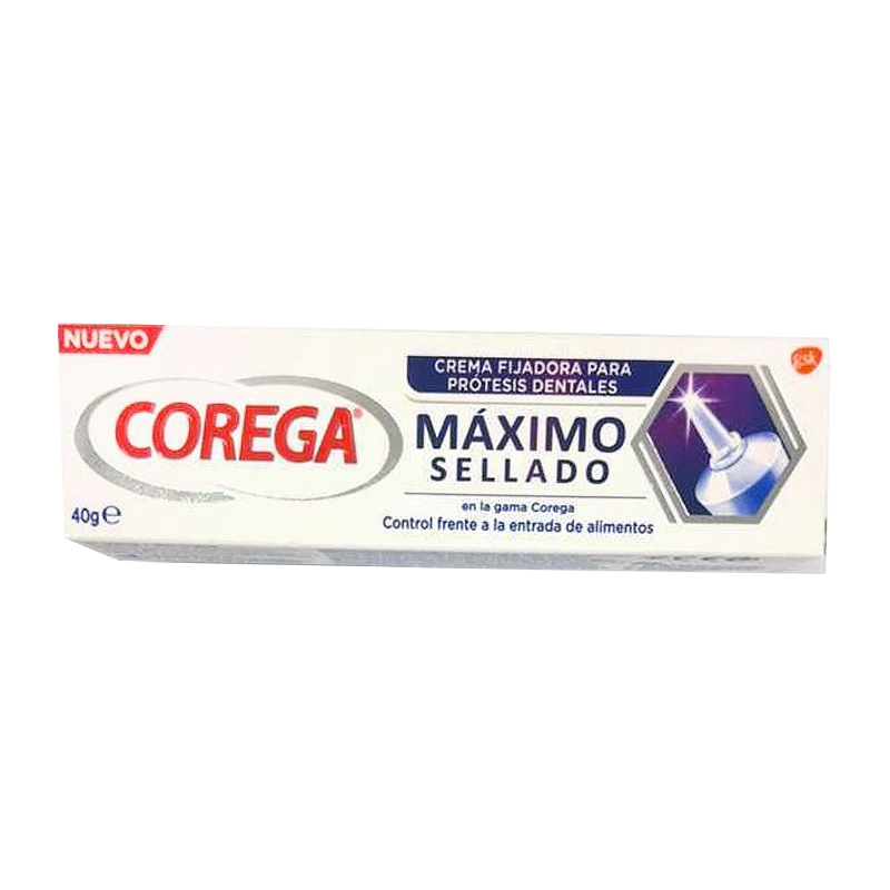 Corega Crema Fijadora Máximo Sellado 40g, te ofrece una especial protección frente a la entrada de alimentos en los huecos que deja la dentadura. Ahora con nueva boquilla que facilita su aplicación.