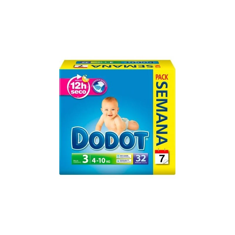 Dodot Pañales T.3 (4-10 Kgs) 32 Unds son un pañal-braguita ideal para niños activos que pesan entre 9 y 15 kilos. Es muy fácil de cambiar y mantiene al pequeño seco durante 12 horas.