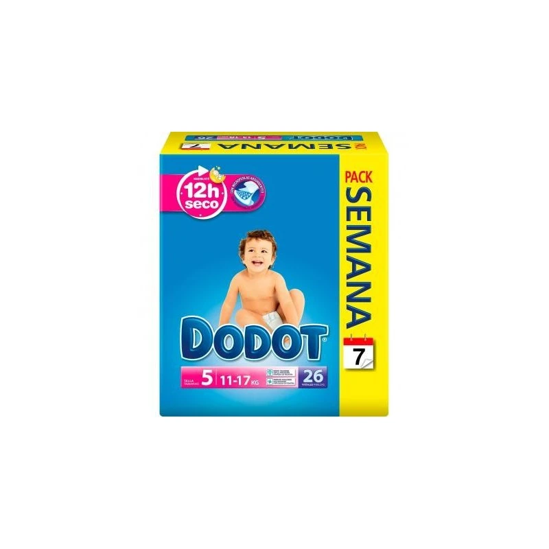 Dodot Pañales T5 (13-18 Kgs) 26 Unds es un pañal-braguita ideal para niños activos que pesan entre 9 y 15 kilos. Es muy fácil de cambiar y mantiene al pequeño seco durante 12 horas.