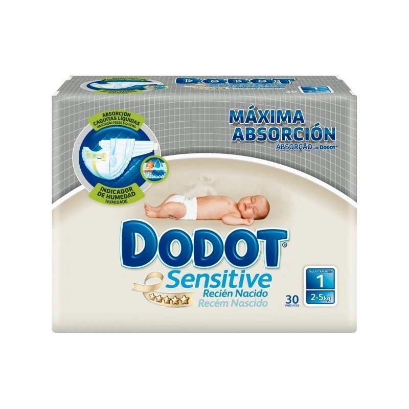 Dodot Sensitive es la línea de Dodot indicada para bebés con pieles más delicadas, que se irritan con más facilidad. Los Dodot Sensitive talla 1 están indicados para bebés de entre 2 y 5 kgs.