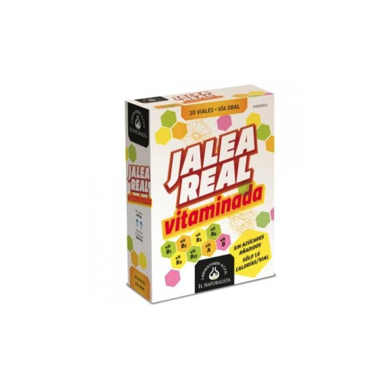 Complemento alimenticio compuesto por Jalea Real liofilizada y 8 Vitaminas: B1, B3, B5, B6, B9, B12, A y D. Puede ser consumido por diabéticos debido a su bajo contenido en azúcares totales (0,09 g/vial).
