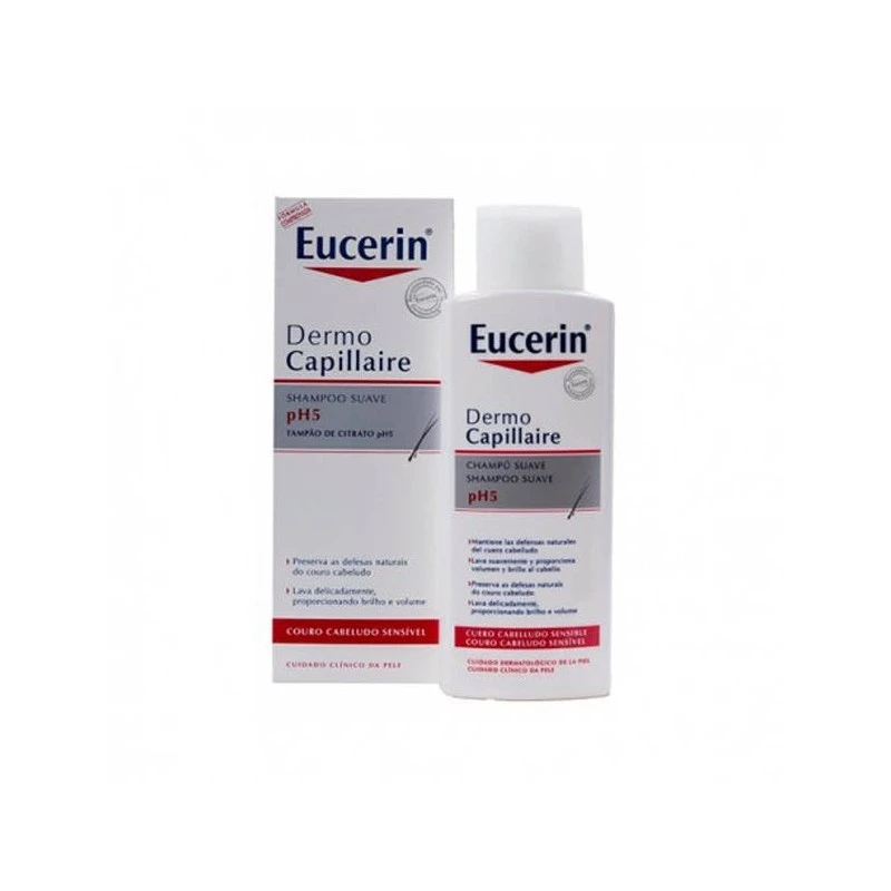 Eucerin Champú Suave 250ml de uso diario apto para las necesidades especiales del cuero cabelludo sensible. Limpia muy suavemente la piel mientras protege las defensas naturales del cuero cabelludo. Aporta volumen y brillo.