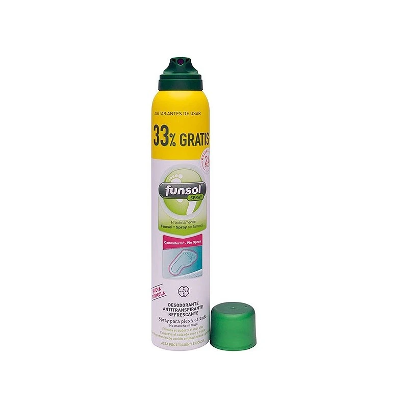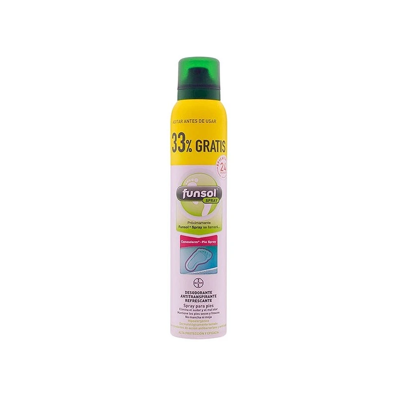 Funsol Desodorante de Pies Spray 150ml evita la hiperhidrosis o sudoración excesiva de la piel y el mal olor de los pies y el calzado.