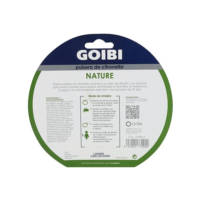 Giobi Nature Pulsera de Citronella es una pulsera antimosquitos que incluye recambios e identificador infantil.