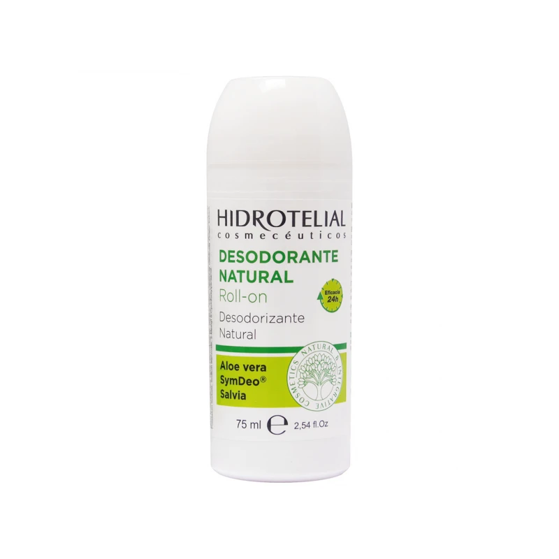 Hidrotelial Desodorante Natural Roll-on 75 ml formulado con extractos vegetales que neutralizan el olor de forma eficaz y prolongada.