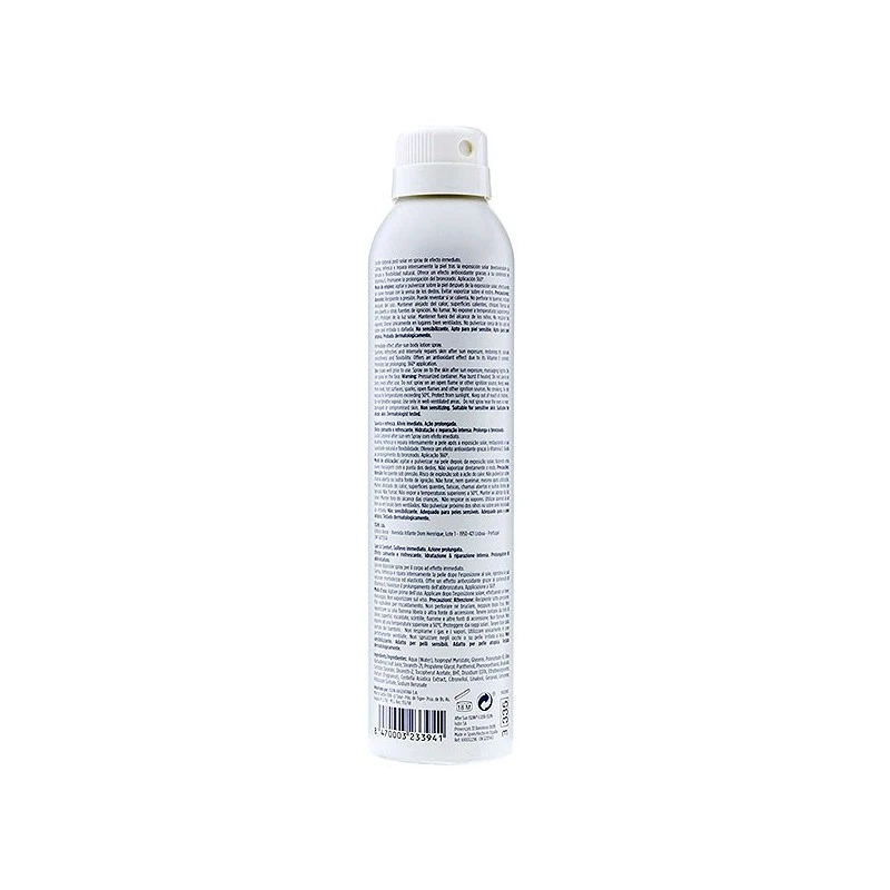 Spray post-solar con efecto inmediato. Formulado para cuidar e hidratar la piel tras la exposición solar, devolviéndole su sensación de bienestar y aliviando sus irritaciones. Resultados al instante.