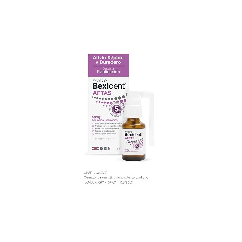 Isdin Bexident Aftas Spray 15ml es un spray que facilita el proceso de cicatrización de las heridas, lo que aliviará las molestias en la primera aplicación.