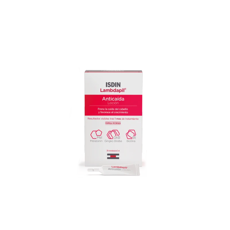 Loción anticaída que ayuda a prevenir y frenar la caída del cabello. Su fórmula con melatonina, ginkgo biloba y biotina crea un microambiente protector del folículo piloso y ejerce una acción antioxidante que:Estimula la repoblación de nuevos cabellos.Controla el proceso de pérdida del cabello revitalizando el bulbo capilar.Reduce el sebo, factor agravante de la caída del cabello.