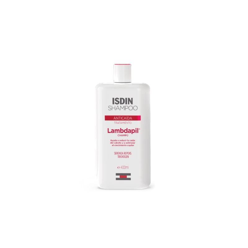 El champú anticaída Lambdapil de Isdin ayuda a frenar la caída del cabello y a estimula, a la vez, el crecimiento capilar, gracias a su contenido en extracto de Serenoa Repens y el complejo multiactivo Trichogen.Sus ingredientes son potentes estimulantes del folículo piloso, una acción que es completada gracias al aporte de Zinc, Vitaminas del grupo B y Biotina.Tu cabello quedará nutrido y fuerte.