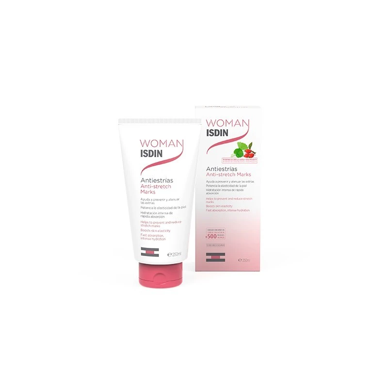 Isdin Woman Antiestrías 250ml es un tratamiento que ayuda en la prevención y el tratamiento de las estrías durante el embarazo.