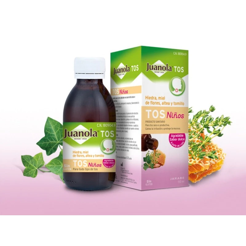 Juanola Tos Niños es un producto sanitario que gracias a la presencia de extractos naturales de demostrada eficacia crea una película mucoadhesiva que calma la tos (seca y productiva), protege de las irritaciones, mejorando la funcionalidad de las vías respiratorias superiores, especialmente durante el invierno o cuando es necesario tratar irritaciones, causadas por agentes externos (frío, contaminación, polvo o humo). No utilizar en niños menores de 3 años sin consultar a un médico. No utilizar en niños menores de 1 año. CUMPLE CON LA NORMATIVA DE PRODUCTOS SANITARIOS