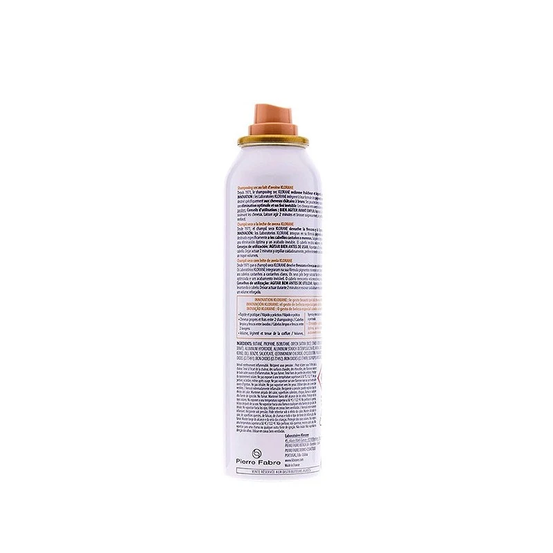 Los Laboratorios Klorane han concebido este producto original para que usted pueda lavarse el cabello sin mojarlo. De uso muy práctico y rápido, el Champú seco extra-suave a la leche de avena KLORANE es ideal para las personas con prisa, que no tienen la posibilidad de lavarse el cabello. Debe sus propiedades limpiadoras a una asociación original de agentes de alto poder absorbente que actúan como auténticas esponjas sobre la suciedad y el sebo del cuero cabelludo. El cabello recobra su volumen y ligereza en unos minutos. Hipoalergénico.Sin parabenos.