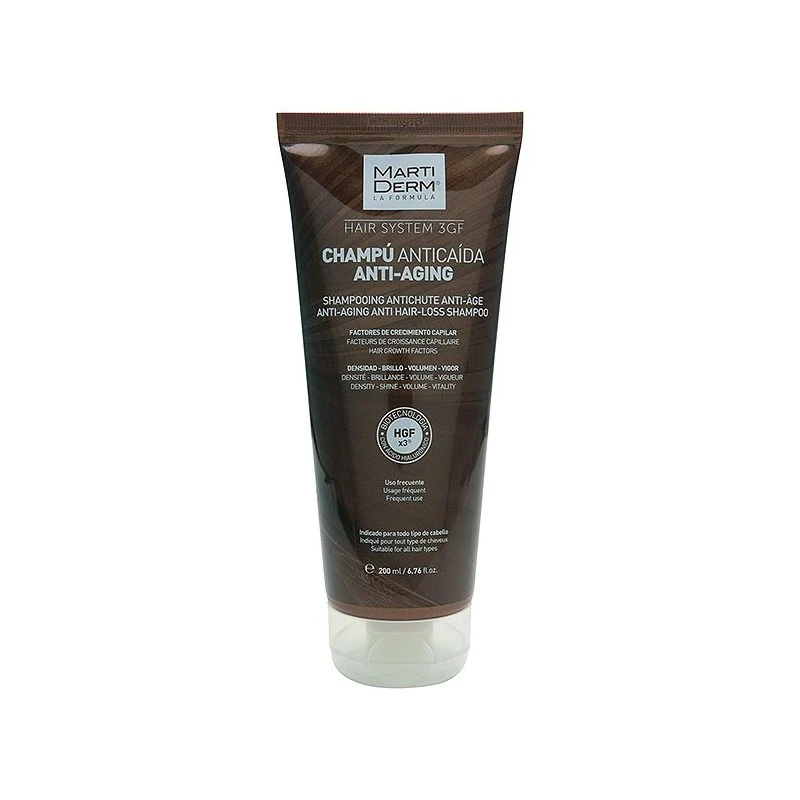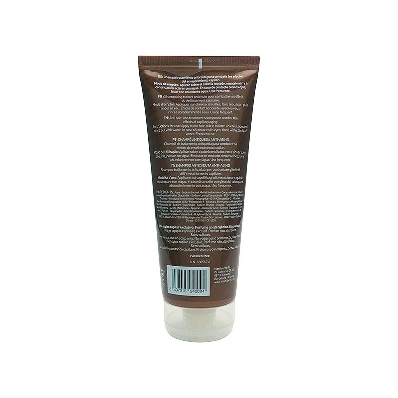 Martiderm Hair System Champú Anticaida Antiaging 200ml es un champú que estimula el crecimiento del cabello y su renovación, aumenta la vascularización y mejora el anclaje del cabello.