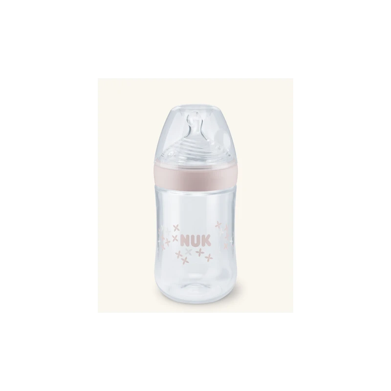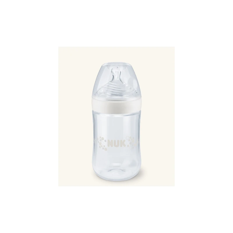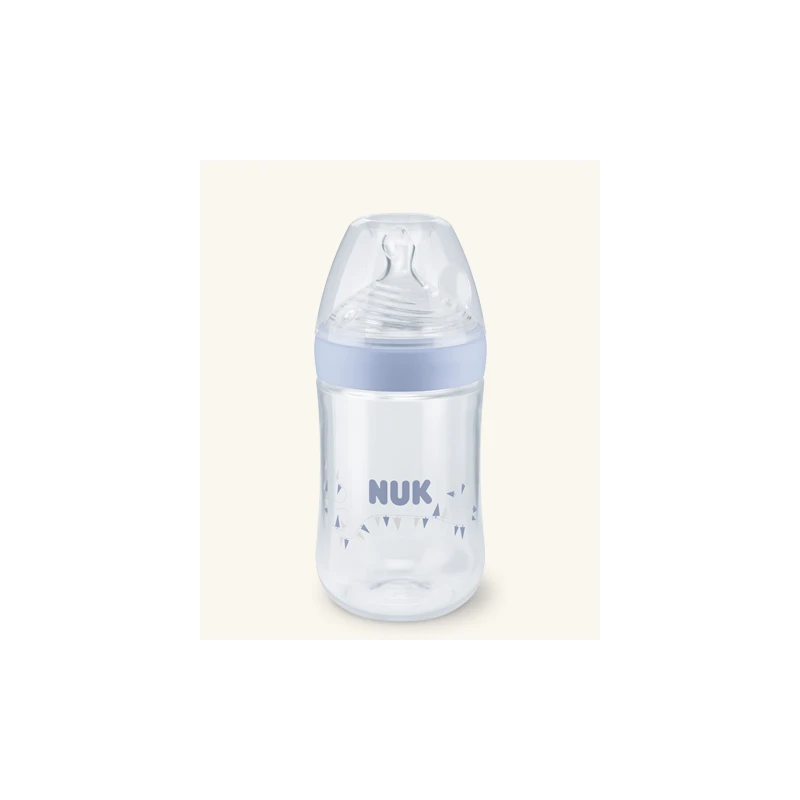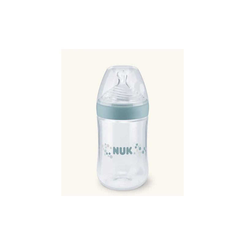 Con una zona extra-suave que se adapta al paladar del bebé.Válvula anti-cólico Nuk que permite una toma sin pausas, evita la ingesta de aire y previene los cólicos.Biberón de alta calidad de polipropileno, sin BPA, duradero y resistente.Seguro y fácil de utilizar. Su cuello extra ancho facilita su uso y limpieza. Tapa protectora que evita el derrame del líquido.Con el afán de acercarnos aún más a la naturaleza y pensando en la alimentación de tu bebé, Nuk ha desarrollado la innovadora tetina Nuk Nature Sense.¿Por qué es tan innovadora? Porque es la única tetina con múltiples orificios finos que simula los conductos mamarios del pecho materno, proporciona un flujo natural y una agradable sensación al succionar.Con una base más ancha y altamente flexible, esta tetina facilita un enganche más natural. Cuenta además con una zona extra suave que se adapta al paladar del bebé de manera muy similar a la del pezón materno.Además, su sistema anti-cólico permite una toma sin pausas, evita la ingesta de aire y previene los cólicos.Un 92% de los bebés aceptan la tetina a la primera, el 99% de las madres lo recomendarían a otras madres y el 98% de los pediatras y matronas confirman que la suavidad y forma anatómica de la tetina es casi como la del pecho materno.Este tipo de tetina es perfecto para las madres que no pueden dar el pecho, también para las mamás que quieren una lactancia mixta para su bebé, o simplemente quieren que su hijo se acostumbre al biberón, facilitando a su vez que los padres puedan sentir la bonita sensación de alimentar a su bebé.El biberón Nature Sense es seguro y fácil de utilizar. Está fabricado con polipropileno de alta calidad, resistente, duradero y libre de BPA. Su cuello extra-ancho facilita su uso y limpieza. Además, cuenta con una tapa protectora que evita el derrame del líquido.Nuk Nature Sense, la tetina perfecta para una sensación familiar y próxima a la lactancia materna