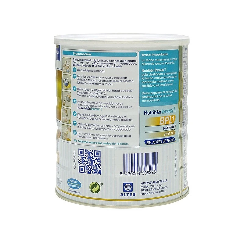 Nutriben Innova 1 es una leche para lactantes a partir del primer día. Con GOS, Nucleótidos y DHA. Está destinada a reemplazar a la leche materna cuando la lactancia materna no es posible o es insuficiente.
