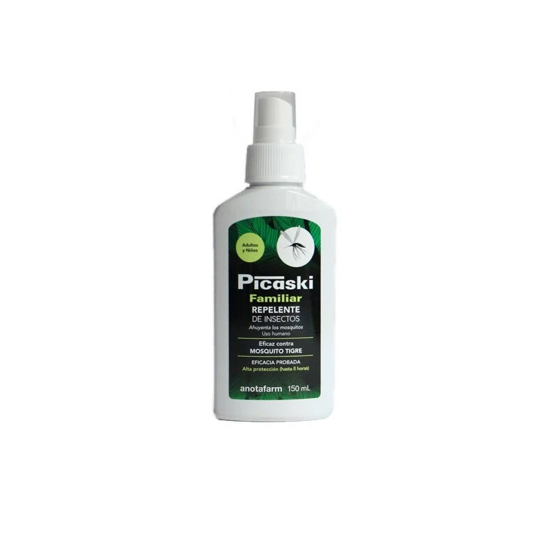 Spray que protege la piel contra las picaduras de mosquitos. Para adultos y niños. Alta protección (hasta 8 horas). Eficaz contra mosquito tigre durante un tiempo máximo de 8 horas. Líquido transparente, forma una eficaz barrera protectora sobre la piel, dejando un agradable aroma y sensación que ahuyenta eficazmente insectos cómo: moscas, mosquitos, avispas y tábanos. La estructura molecular básica, garantiza una baja toxicidad. No produce ningún tipo de reacción tóxica, ni alérgica en la piel.