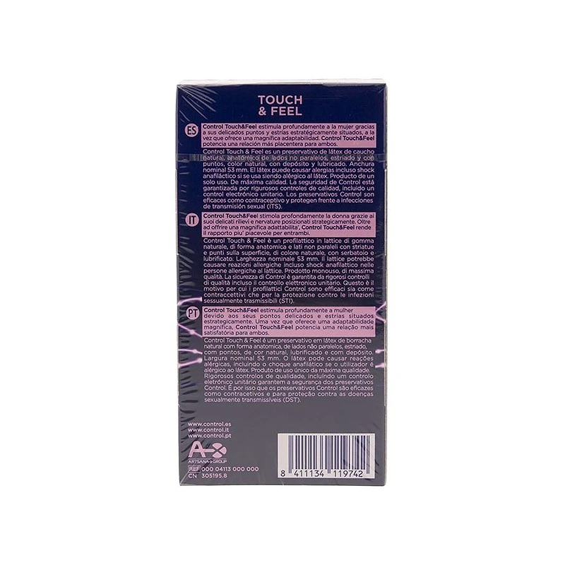 Control Touch&Feel estimula profundamente a la mujer gracias a los puntos y estrías estratégicamente situados, a la vez que ofrece una magnífica adaptabilidad. Control Touch&Feel potencia una relación más placentera para ambos.