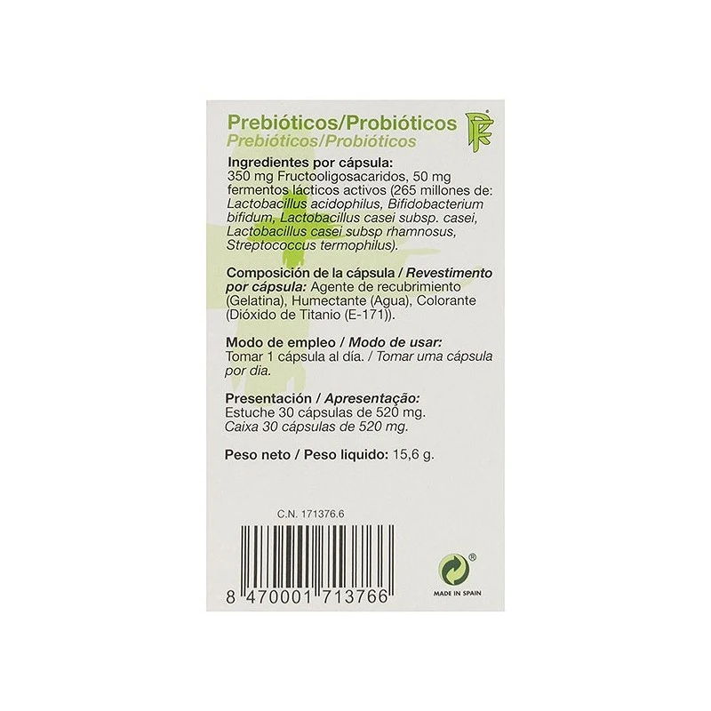 La fórmula de Rueda Farma Probióticos y Prebióticos posee los siguientes activos: