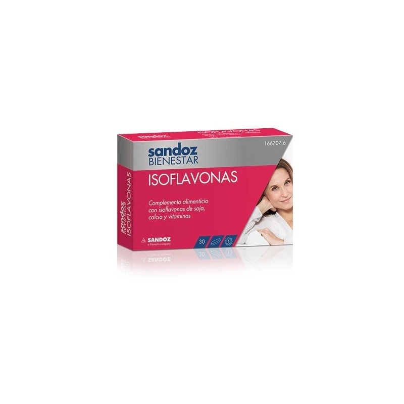 ANDOZ BIENESTAR ISOFLAVONAS es un complemento alimenticio que contiene 100 mg de extracto de semilla de soja (Glycine max), una planta leguminosa procedente de Asia conocida por contribuir al bienestar corporal y al alivio de los síntomas clásicos de la menopausia. Además, contiene calcio y diversas vitaminas, entre ellas vitamina E.