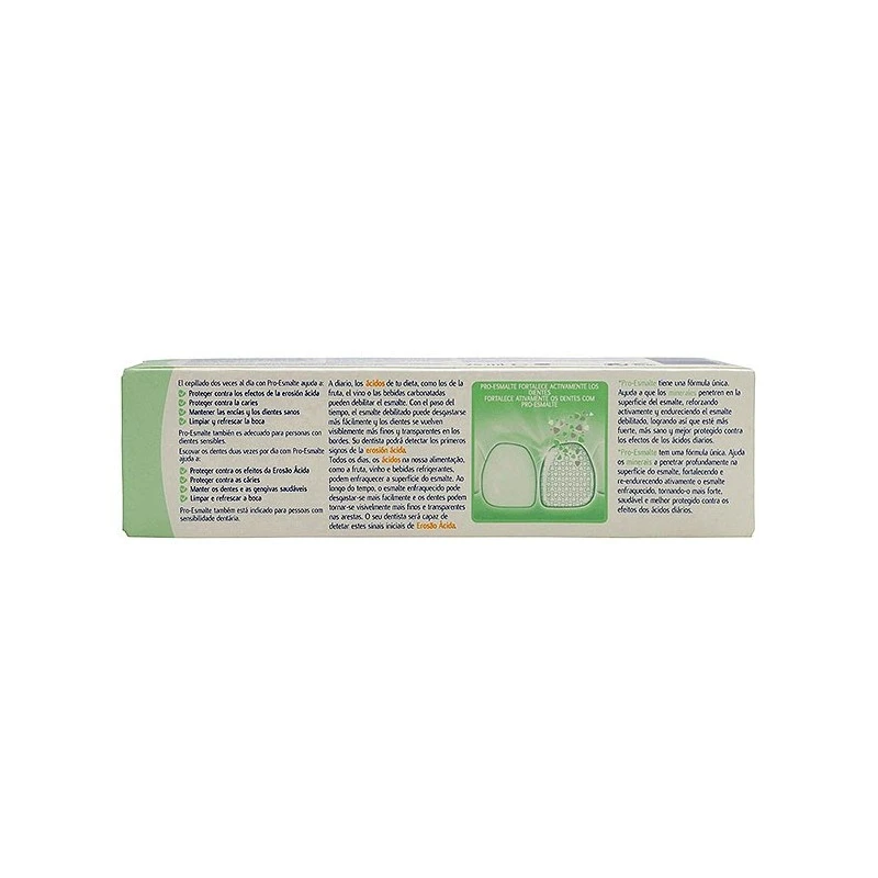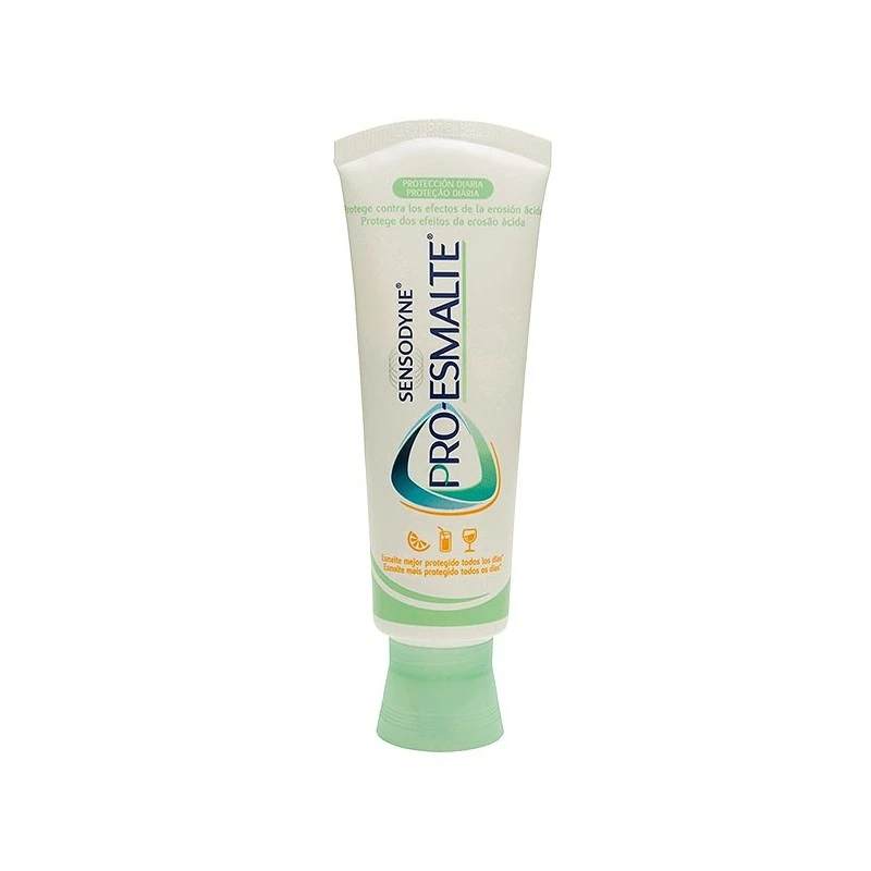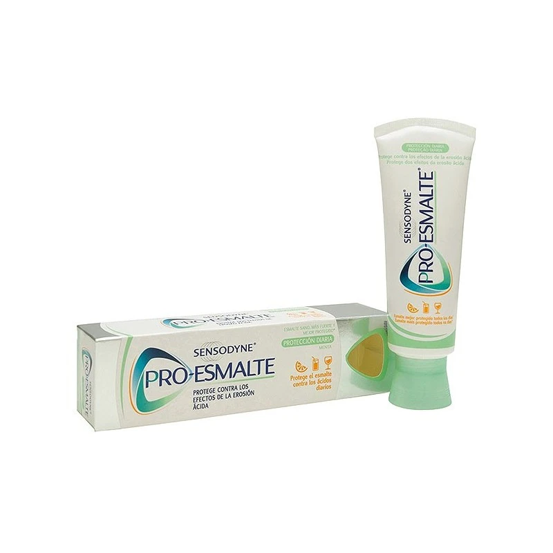 Sensodyne Pro-Esmalte es un dentífrico especialmente formulado para eliminar las molestias de dientes sensibles y ayudar a proteger los dientes del desgaste del esmalte, además de tener los beneficios de una pasta normal, incluyendo el frescor y la protección contra la caries.