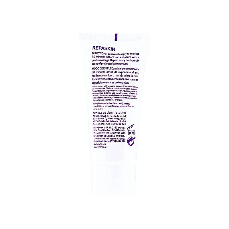 Con Sesderma Repaskin fotoprotector tacto seda SPF30+ 50ml se retrasa y reduce el fotoenvejecimiento celular.