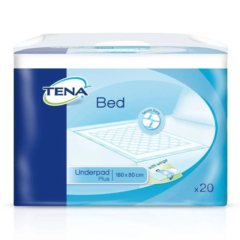 Tena Bed Plus Protector De Cama Con Alas 80 x 180 20 Uds es un empapador con núcleo absorbente y con una capa inferior que no deja pasar el líquido ofreciendo un extra de protección contra los derrames durante las rutinas de cambio de pañales.
