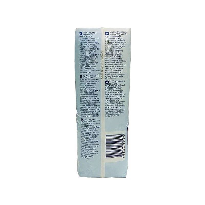 InstaDRY™ transfiere los fluidos hacia el interior de la compresa y los aleja de la piel para que te sientas seca y cómoda. TENA Lady te ofrece tranquilidad y confianza.¡No dejes que las pérdidas de orina te paren! Las compresas TENA Lady incluyen Fresh Odour Control, que ayuda a evitar la formación del indeseado olor. TENA Lady te proporciona sensación de frescor y confianza, para que puedas seguir con tu vida diaria.Dermatológicamente testadaTodos los materiales del producto están testados dermatológicamente para garantizar la seguridad y el cuidado de la piel.La sequedad es vital para sentirte limpia y que tu piel esté protegida. Por ello, las compresas TENA Lady incluyen una superficie Silky Soft similar a un tejido, que retienen de inmediato cualquier humedad de la piel. Las compresas TENA Lady te mantienen seca y segura.TENA Lady ofrece protección, confort y discreción excelentes. Las compresas TENA Lady son anatómicas, se han diseñado para hacerte sentir cómoda y para que puedas centrarte en las cosas divertidas de la vida.En última instancia, el objetivo es que te sientas segura. Con los laterales elásticos, las compresas TENA Lady se adaptan a la forma de tu cuerpo. Siguen suavemente el movimiento de tu cuerpo, independientemente de lo que hagas. Las compresas TENA Lady te proporcionan libertad de movimiento y confianza, para que no tengas que preocuparte por las pérdidas de orina.TENA Lady incluye un tejido suave y transpirable que permite la circulación del aire, lo que evita la humedad y mantiene la piel sana. TENA Lady te proporciona sensación de frescor.Cada compresa TENA Lady está envuelta individualmente, para que puedas llevarlo fácilmente en un bolsillo o en tu bolso de mano. Las compresas TENA Lady son fáciles de llevar y de desechar.