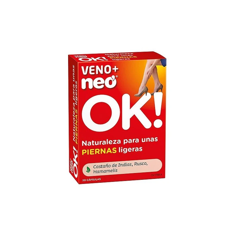 Veno+Neo es un complemento alimenticio que ayuda a tratar la pesadez de las piernas. Indicado para personas adultas con problemas de circulación, varices o arañas vasculares. También puede usarse tras un agotamiento físico que afecte a la salud de tus piernas (cansancio físico, rampas…).