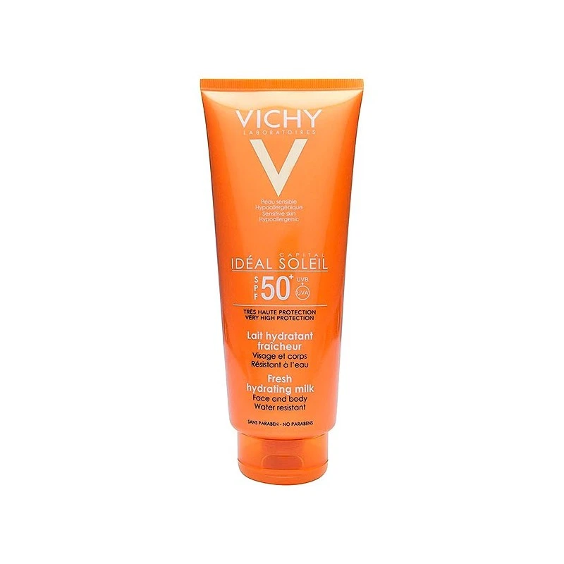 Vichy Capital Soleil hidra-leche SPF50+ es una leche solar con una suave textura que te protegerá eficazmente frente a los rayos UV y UVA. Es ideal para proteger las pieles sensibles y puede utilizarse tanto en el cuerpo como en la cara.