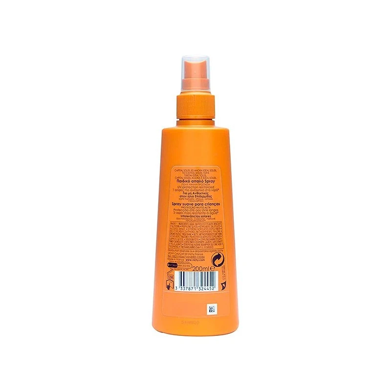 Vichy Capital Soleil spray infantil SPF50+ ofrece un práctico y cómodo spray solar, que facilita su aplicación por todo el rostro y el cuerpo, contiene un sistema de filtrado de amplio espectro, consiguiendo así una protección segura y fotoestable. Al incorporar agua termal a su composición, esta loción solar produce agradables efectos calmantes y regeneradores que permiten reparar las pieles más castigadas por el sol.