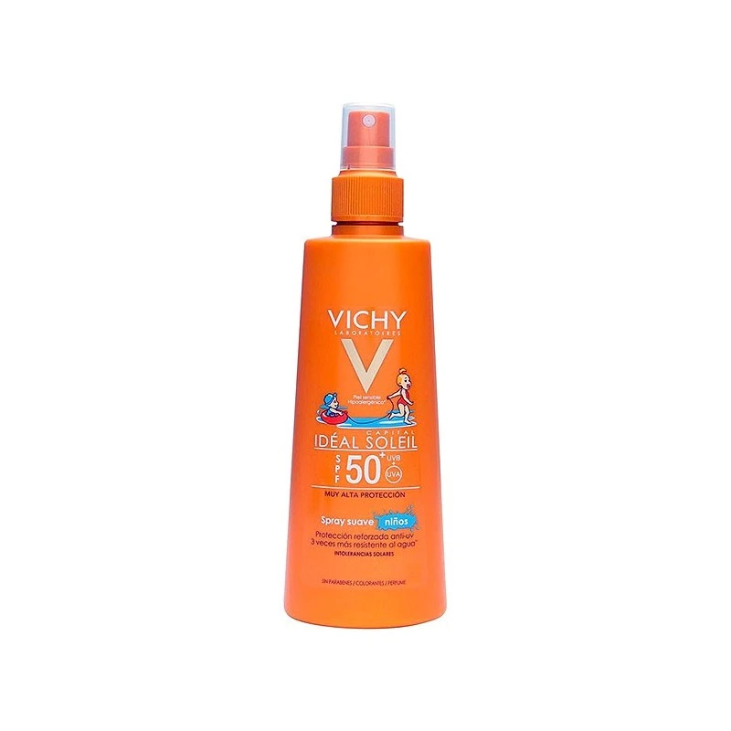 Vichy Ideal Soleil niños SPF50+ Spray 200ml es un spray solar que cuida y protege la delicada piel de tus hijos bajo el sol.