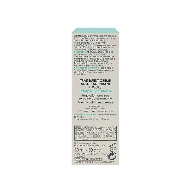 Vichy Tratamiento Antitranspirante 30ml es un tratamiento contra la transpiración excesiva.